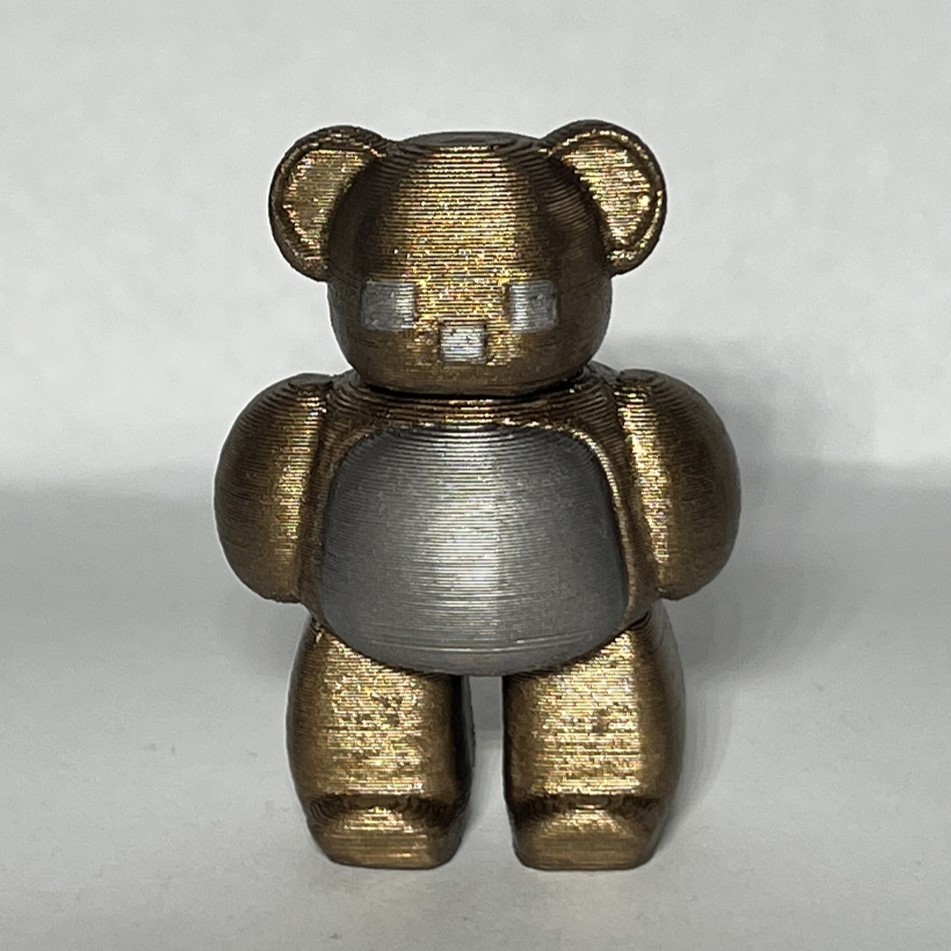I modeled and 3D printed a robot-like teddy bear in significance of Teddy from the sci-fi film A.I. Artificial Intelligence (2001), directed by Steven Spielberg. In context, Teddy is a plushie bear-like robot that is designed to be a companion to the protagonist David, a highly advanced child robot. Teddy is a loyal friend and protector to David throughout his journey to find the “Blue Fairy” and become a real boy. Teddy is programmed to express qualities of affection, empathy, and companionship in a way that is endearing and comforting to David. Despite being a machine, Teddy exhibits human-like qualities of selflessness and emotional support, becoming David’s closest friend and confidant. Teddy is not only a memorable character in the movie, but also a symbol of adoration, innocence, and the blurred line between humans and machines.